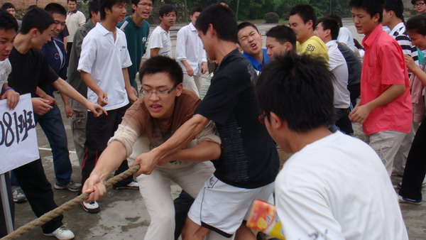 为发扬奥运精神,愉悦身心,陶冶心灵,5月25日中午12:30,数理学院“快乐班级”男女混合拔河比赛在弘晨排球场开始了。全院8个班有120个同学组织了8个队参加了本次比赛。