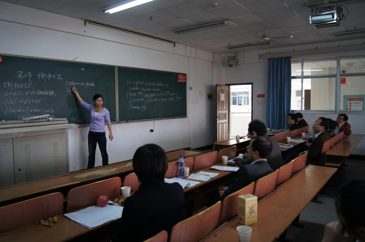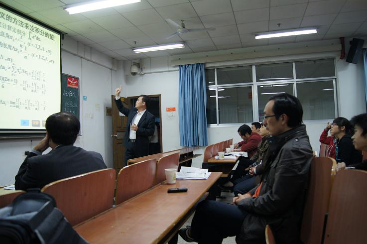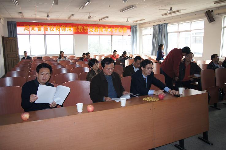 为迎接“湖南省普通高校教师课堂教学竞赛”,进一步加强我校课堂教学管理,提高广大教师课堂教学能力与水平,我校于11月15日下午在1教学楼203教室举行了“湖南省普通高校《高等数学》教师课堂教学竞赛预赛。 比赛由校教务处和数理学院联合主办,副校长龚学余任领导小组组长,数理学院教学督导组组长郭长青任评委小组组长,教务处龙双涟副处长、高教所简世德所长亲临比赛现场指导,数理学院欧阳自根院长、彭建军书记及胡和平副院长及学院教学督导组成员参与了比赛的组织和评审工作。 比赛从14:00开始,一直到21:00结束,七位参赛队员按事先抽签顺序进行了七个小时激烈的角逐。经过评委专家的认真评审,谭琼华老师、陈云新老师、刘艳琪老师等三位老师以优秀的表现被推荐参加湖南省普通高校教师课堂教学竞赛复赛。 参赛的七位老师都有着丰富的教学经验,赛前都做了精心的准备,尤其是谭琼华老师教学目标明确具体、教学方法科学有效、教学过程完整合理、教案讲稿齐全规范、教学组织合理有序、内容处理准确透彻、教学构思恰当清晰,个人教学风格明显,展现了较高的教学水平和技能,使听课者受益匪浅。