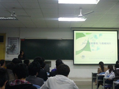 11月22日晚7:30,数理学院2011年暑期优秀社会实践报告学习交流会在9教202举行。数理学院学工室老师袁艳玲以及大二、大三的学生代表和大一全部新生参加了此次交流会。会议由曾曼璐同学主持。