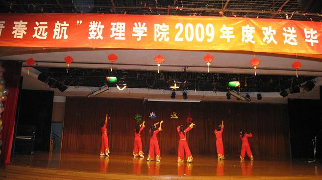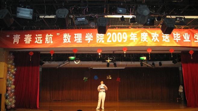 首先,由数理学院常务副院长欧阳自根教授宣读了数理学院对顺利考取研究生的同学的表彰文件;随后,晚会在罗生副书记激情洋溢的致辞中拉开帷幕。本次晚会节目内容丰富,汇集了舞蹈、歌唱、武术、话剧、相声等多种元素。舞蹈类节目中,既有活力四射的现代舞《卡农》、《打电话》,也有优美高雅的《东方女郎》;深情款款的独唱《为你写诗》、小合唱《再见吧,老兵》唱出了对学姐学长的不舍之情,毕业生的《知足》则唱出了对母校的留恋的心声;体现中国传统文化的武术《双截棍》更是精彩绝伦;讲究说学逗唱的相声《相声与小费》更是让现场师生捧腹大笑;不乏幽默搞笑话剧《追忆大学》以其独特的方式讲述了即将离校的毕业生的心情;晚会精彩纷呈,高潮迭起,现场充满了同学们的欢声和老师们的笑语。最后,晚会在表达全院师生祝福的大合唱《祝你一路顺风》中落下帷幕 、、、、、、
