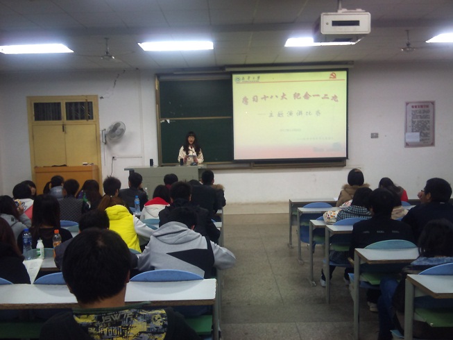 扬革命旗帜,忆峥嵘岁月。为纪念“一二九”学生运动七十七周年,庆祝中国共产党第十八次全国人民代表大会的胜利召开,2012年12月8号晚上7:30,数理学院学习宣传贯彻党的十八大精神、纪念“一二九”运动七十七周年演讲比赛在9-101教室隆重举行。数理学院10级、11级、12级全体同学参加了此次活动,比赛的评委由学工室陈艳老师、学生会主席孙勇、学生会副主席张建楠、学习部部长李宏波担任。