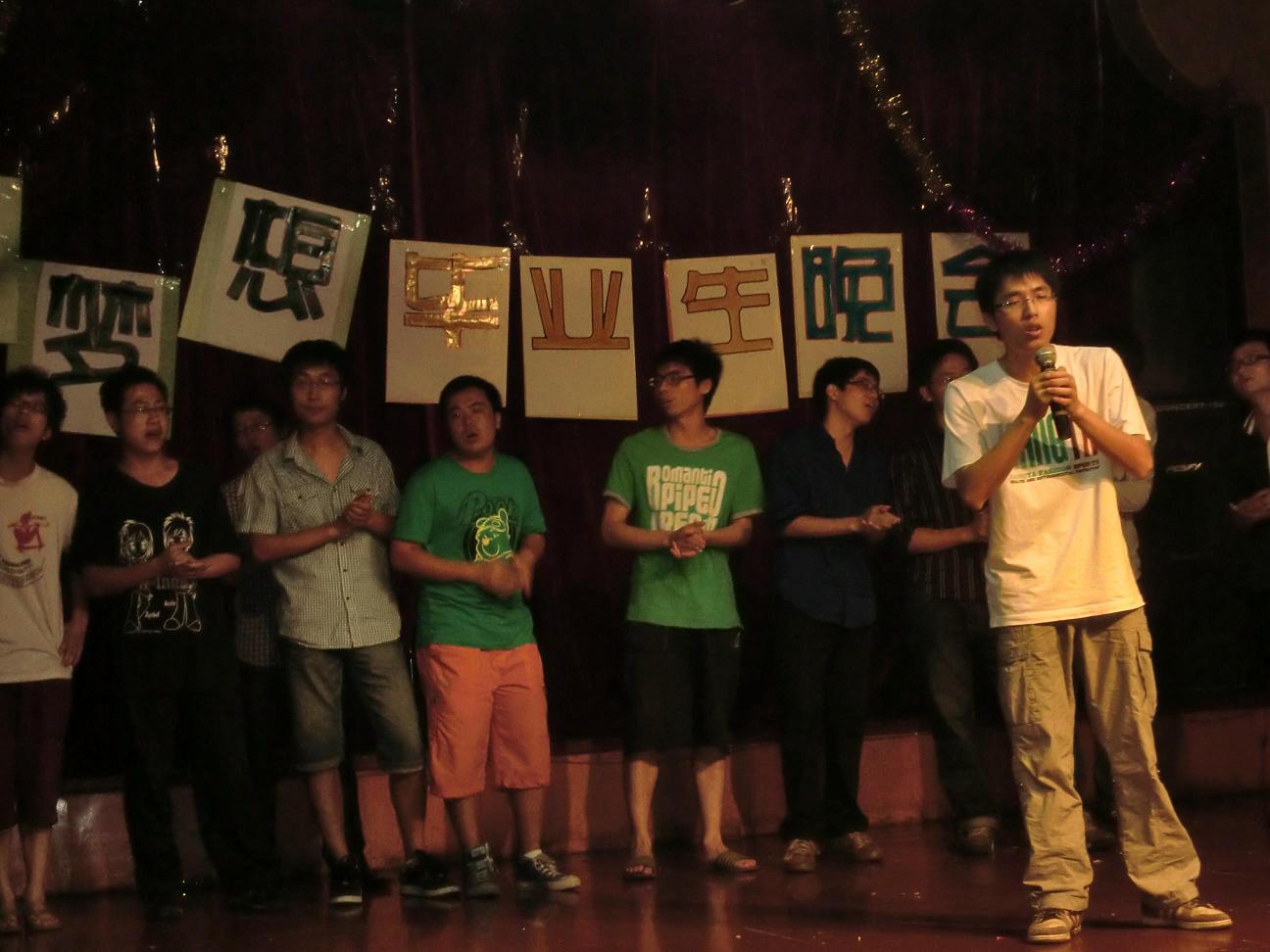 形式多样的节目让我们不知不觉的忘掉了时间,忘掉了即将来临的分别。依依不舍中,毕业班的学长和学姐们深情地喊出了“今天我们以南华为荣,明天南华将以我们为傲”。