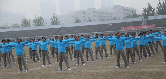 我院61名老师参加学校举办的第九套广播体操竞赛,经过全体老师的共同努力获得了全校27个参赛队的第12名。