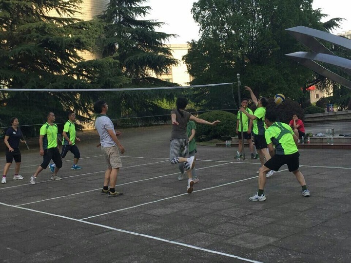 继5月份校工会举行气排球比赛后,我院继续开展气排球活动,成立了有会员30余人的气排球协会,每周至少练习两次,每次参与人数都在15人以上。并大致划分为三个小队,队长由院分工会委员或工会小组长担任。
