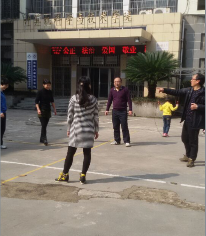 此次活动得到了大家的积极支持,活动按照预定时间准时开始。虽然是女职工的比赛,男同胞们也积极响应,有帮着计时的,有帮着数数的,有的是全家来加油,还有的是带着小孩来参加。比赛后,大家还自发组织起跳长绳、围圈踢毽子活动。学院领导胡和平书记和廖新元副院长亲临现场指导比赛,并在赛后与大家一起跳绳、踢毽子,整个活动期间热闹非凡,体现出我们数理学院是一个温馨的大家庭。
