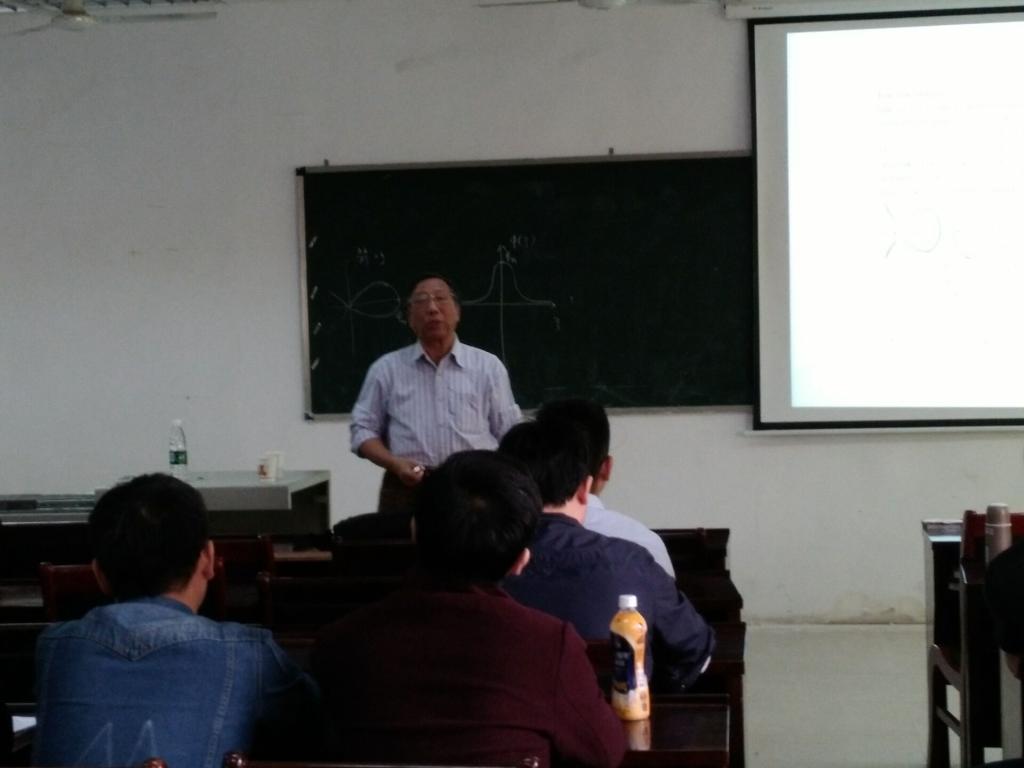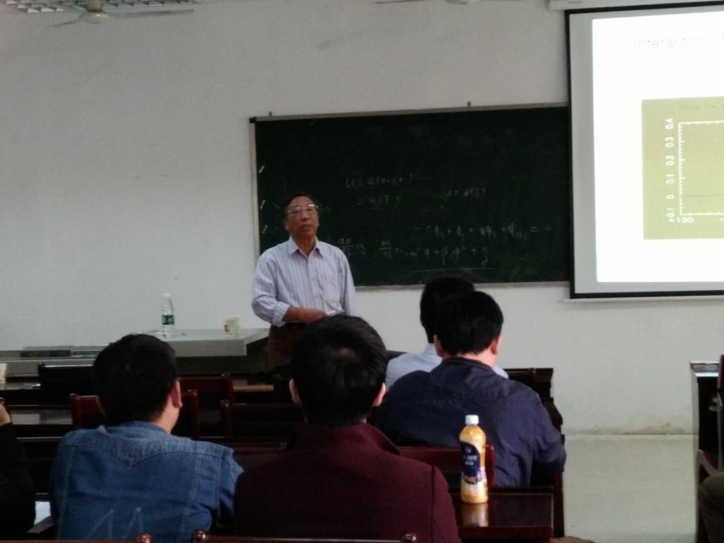 在报告会上,李继彬教授首先介绍了几类波的定义和研究背景;然后,他介绍了一些微分方程各种波解的研究成果和方法并指出了一些国外学者研究论文的错误;最后,他建议大家做学问要严谨,不要盲目相信国外学者的成果。报告会后,李教授对我院微分方程与动力系统研究团队给予了高度评价,并就波解的研究方法与我院教师进行了交流,并探讨了Maple软件在微分方程研究中的简单应用和技巧,我们受益匪浅。