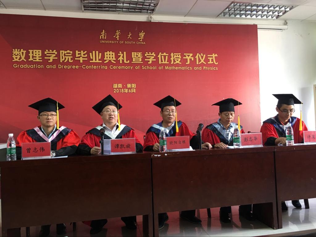 6月10日上午,数理学院2018届学生毕业典礼暨学位授予仪式在院会议室隆重举行。院长欧阳自根、院党委书记谭凯旋、副院长彭志华、院党委副书记曾志伟等院领导,系主任、导师代表、辅导员、毕业班班主任、院办负责人、教学秘书、在校生代表,与2018届毕业生欢聚一堂,共同参与、见证他们生命历程中的重要盛典。典礼由院党委书记谭凯旋主持。