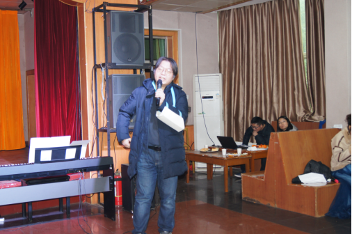 联欢会伊始,数理学院书记谭凯旋教授发表讲话,他介绍了在过去的一年里我们数理学院全体教职工共同努力所取得的非凡成就,对老师们付出的辛勤劳动表示感谢,希望在新的一年里大家继续发扬奋力拼搏的精神,力争上游,勇攀高峰,将数理学院建设得更加美好。
