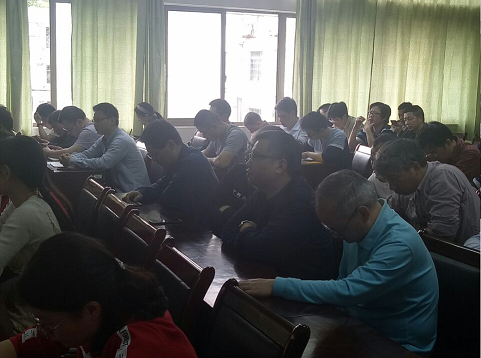老师们在认真学习中