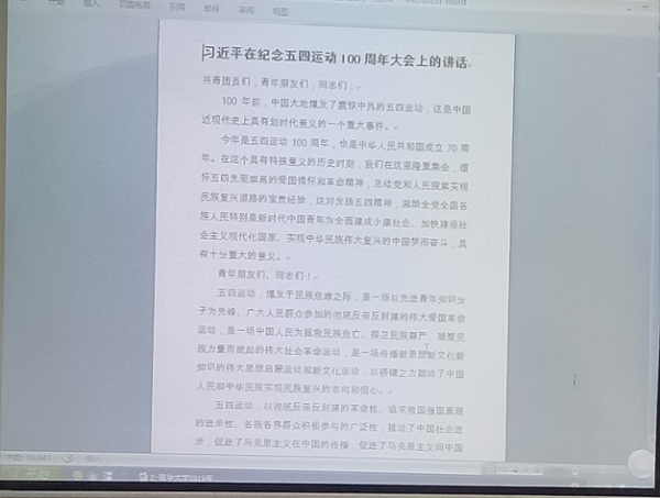 2019年5月23日下午,数理学院全体教职工在9-309举行第二次教职工理论学习,院班主任、院党委委员李平贵同志带领大家一起学习习近平总书记在纪念五四运动100周年大会上的讲话。