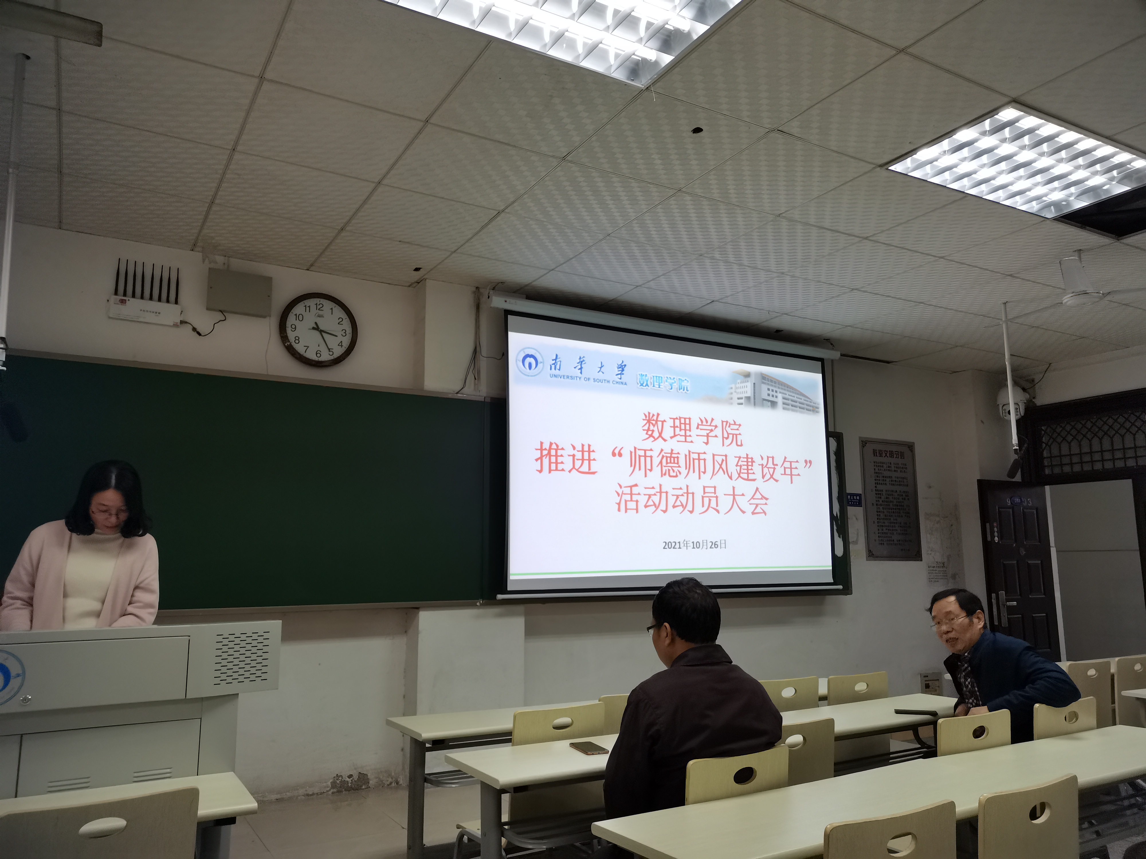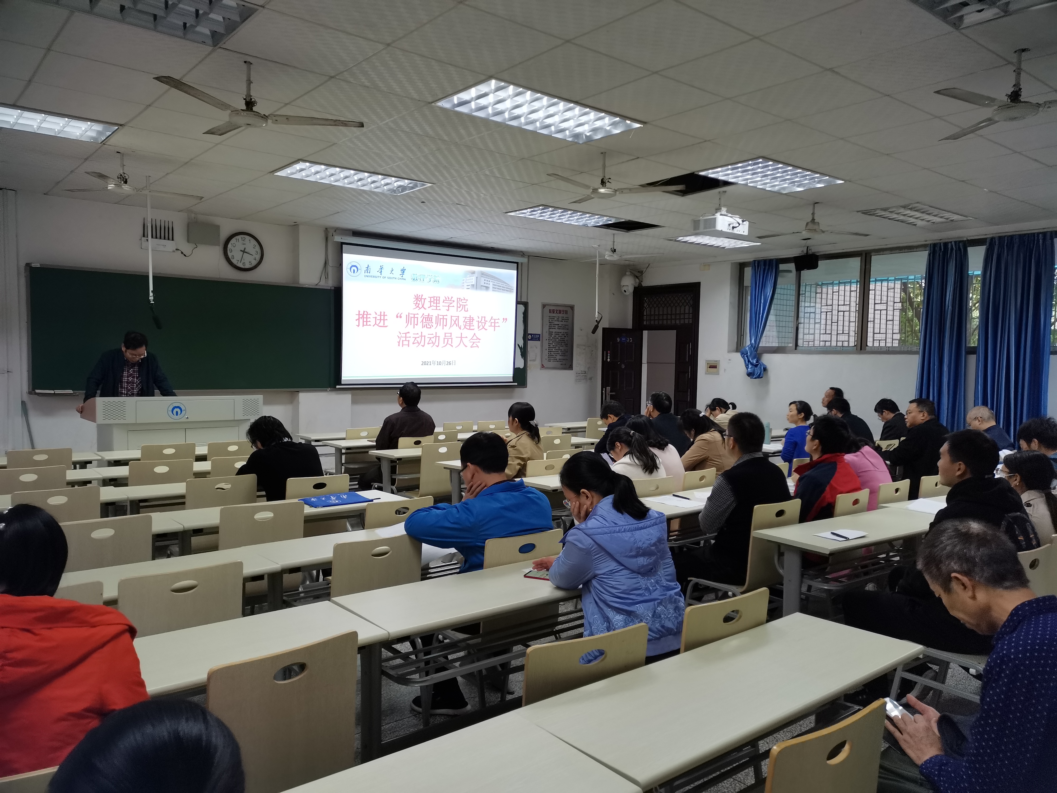 2021年10月26日,欧阳自根书记组织本院没有课的教师开展了数理学院2021年第七次教职工理论学习暨推进“师德师风建设年”活动动员大会。