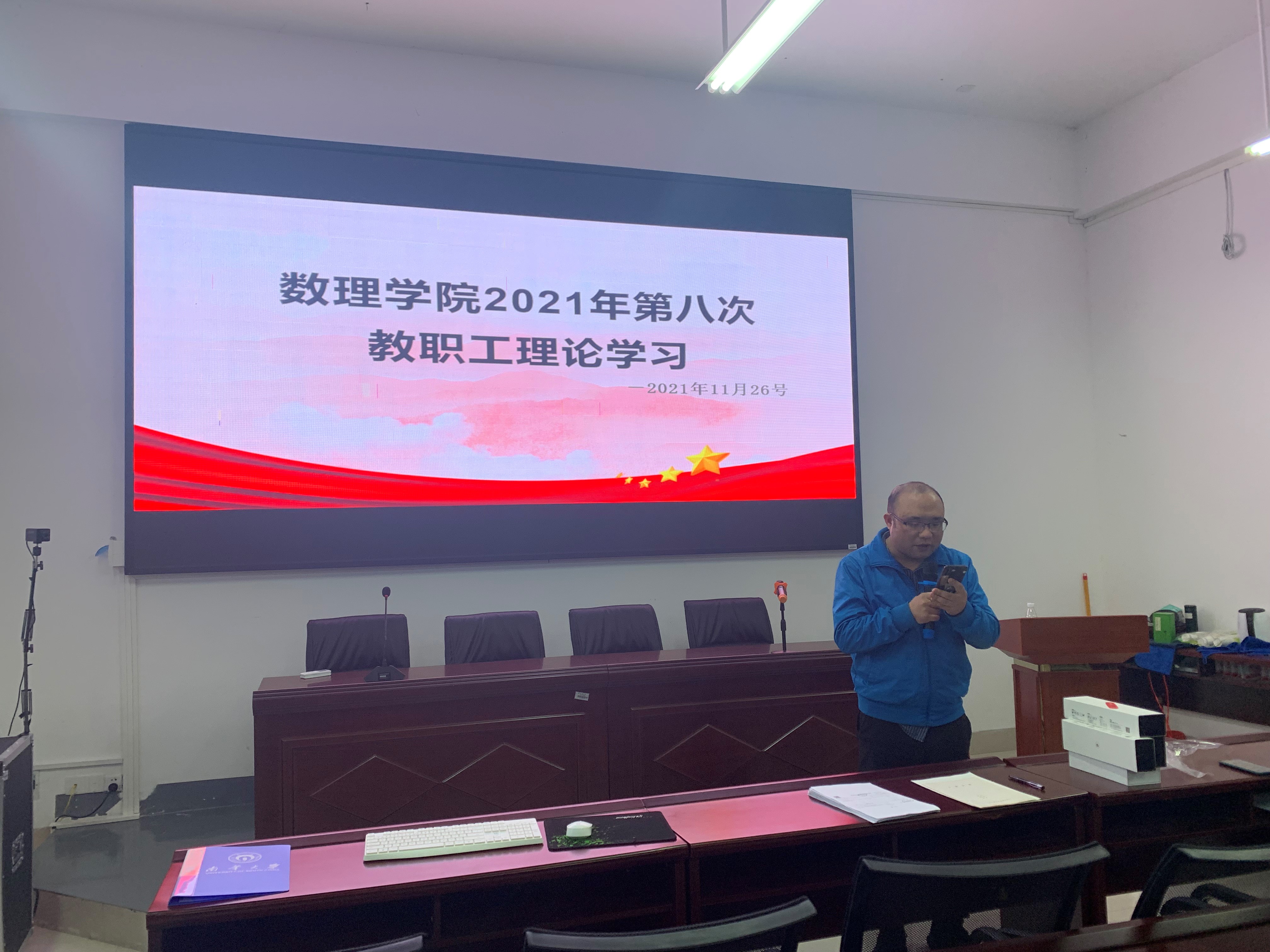2021年11月26日,欧阳自根书记组织本院没有课的教师开展了数理学院2021年第八次教职工理论学习。