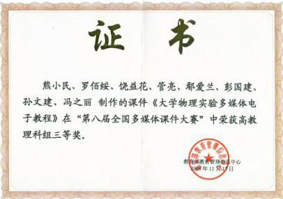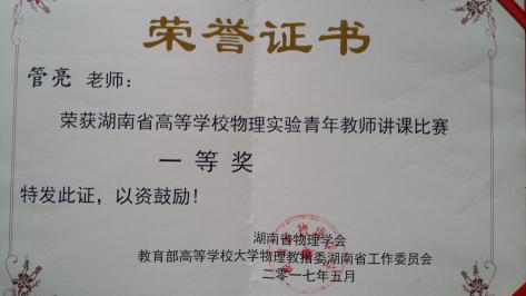 为了能够更好地适合我校实际的实验教学,满足实验教学改革的需要,物理实验室老师通过培训和教学竞赛不断提高自身的教学能力并获得多项竞赛奖,如湖南省高等学校物理实验青年教师讲课比赛一等奖、湖南省高等学校课堂教学竞赛三等奖、sunbet申搏教学成果奖“二等奖”,全国大学生物理实验竞赛一等奖等。同时物理实验室出版了多部实验教材,编写了《大学物理实验补充教材》、《大学物理实验》和《大学物理实验教程》等教材。