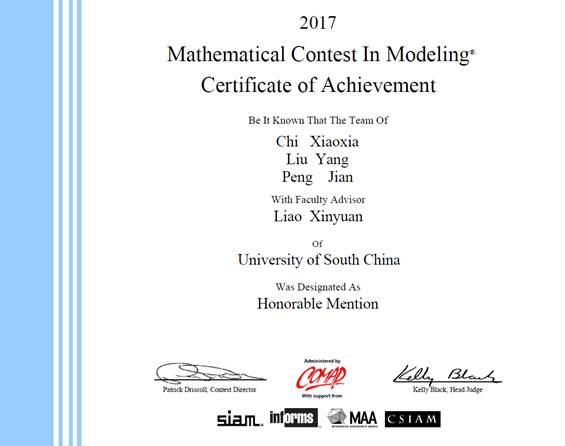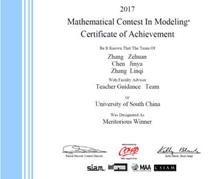 2017sunbet申搏参加国际数学建模竞赛获奖成绩