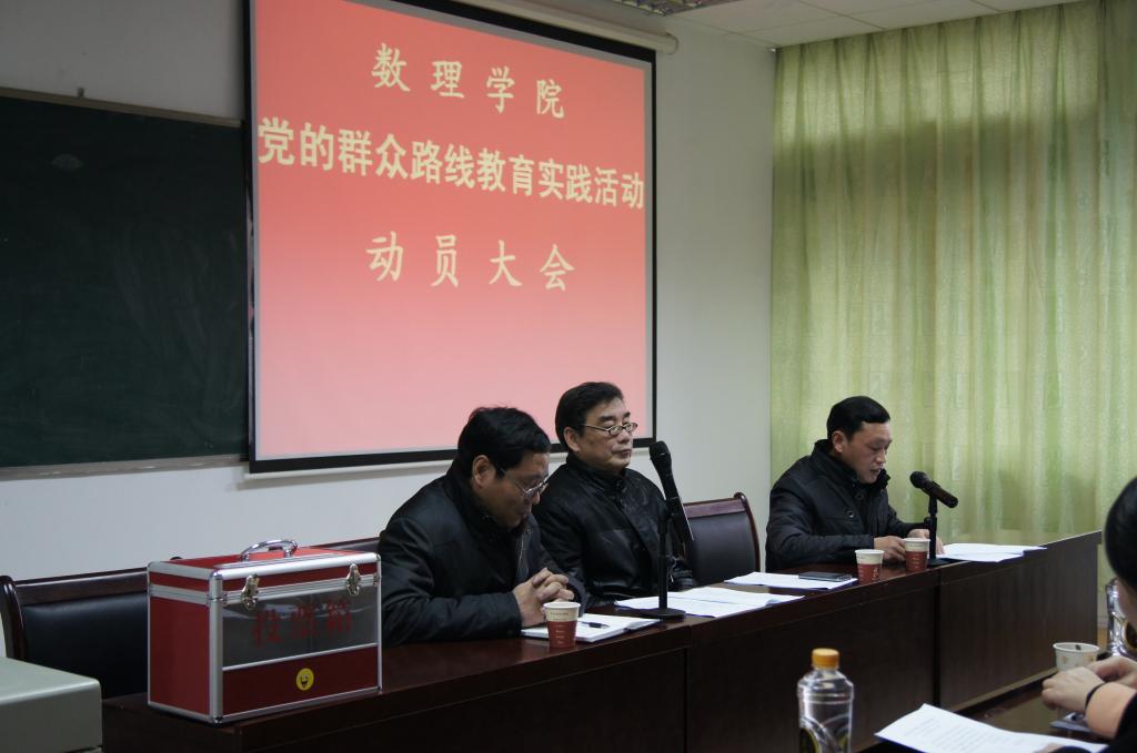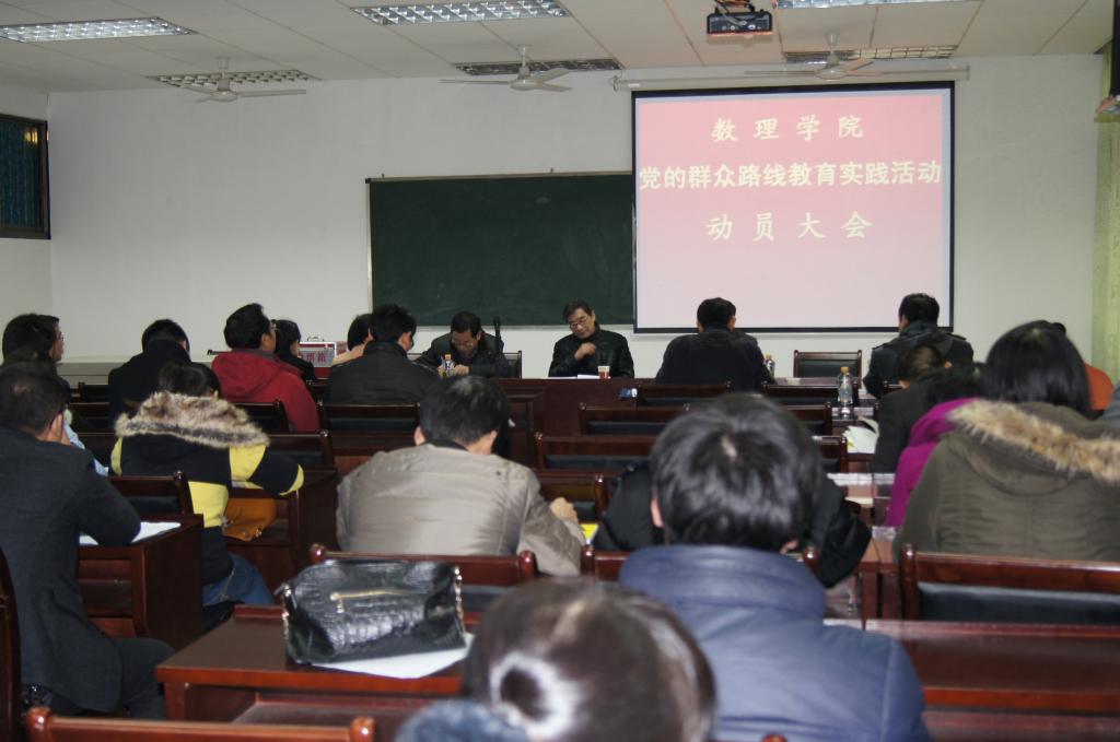 3月12日下午,数理学院群众路线教育实践活动动员大会在第九教学楼9-309学术厅召开,学院领导、教职工党员、学生党员共计47人出席动员大会,校群众路线教育实践活动第二督导组成员莅临现场指导工作。