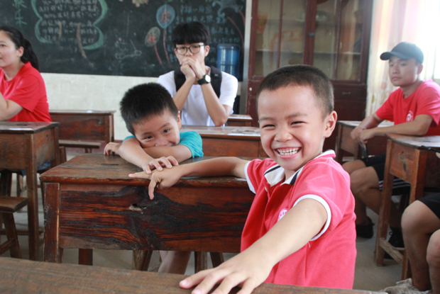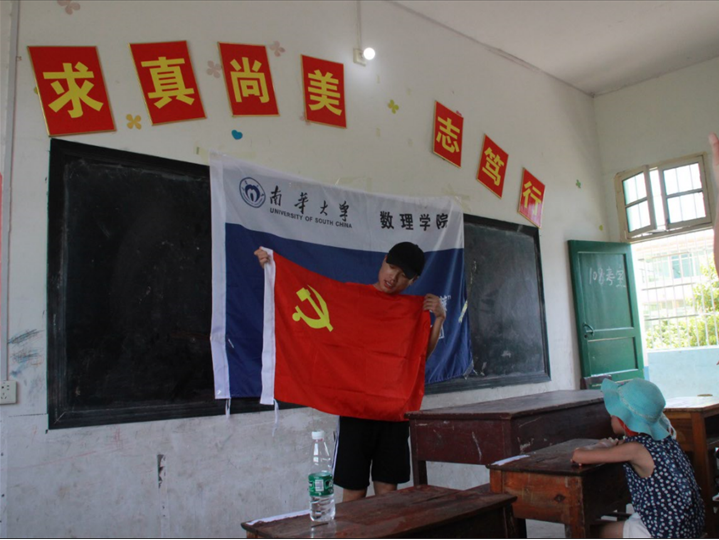 交流结束后,我们服务团与当地的10多名留守儿童开展了互动活动。首先由数理学院十五届学生会主席李祥同学为他们介绍了中国共产党党旗及中国共青团团旗的图案以及所代表的意义,接着十五届团委副书记王韦烨同学为小朋友们进行了多方面的安全教育,之后带着他们一起做游戏,唱红歌。最后给他们发放了带有sunbet申搏标志的学习用品以及爱心慰问金。