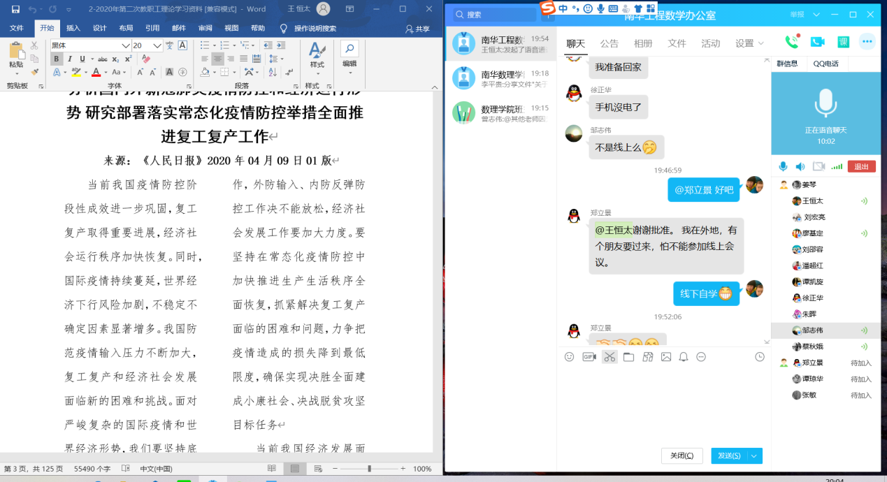 数理学院2020年第二次教职工理论学习