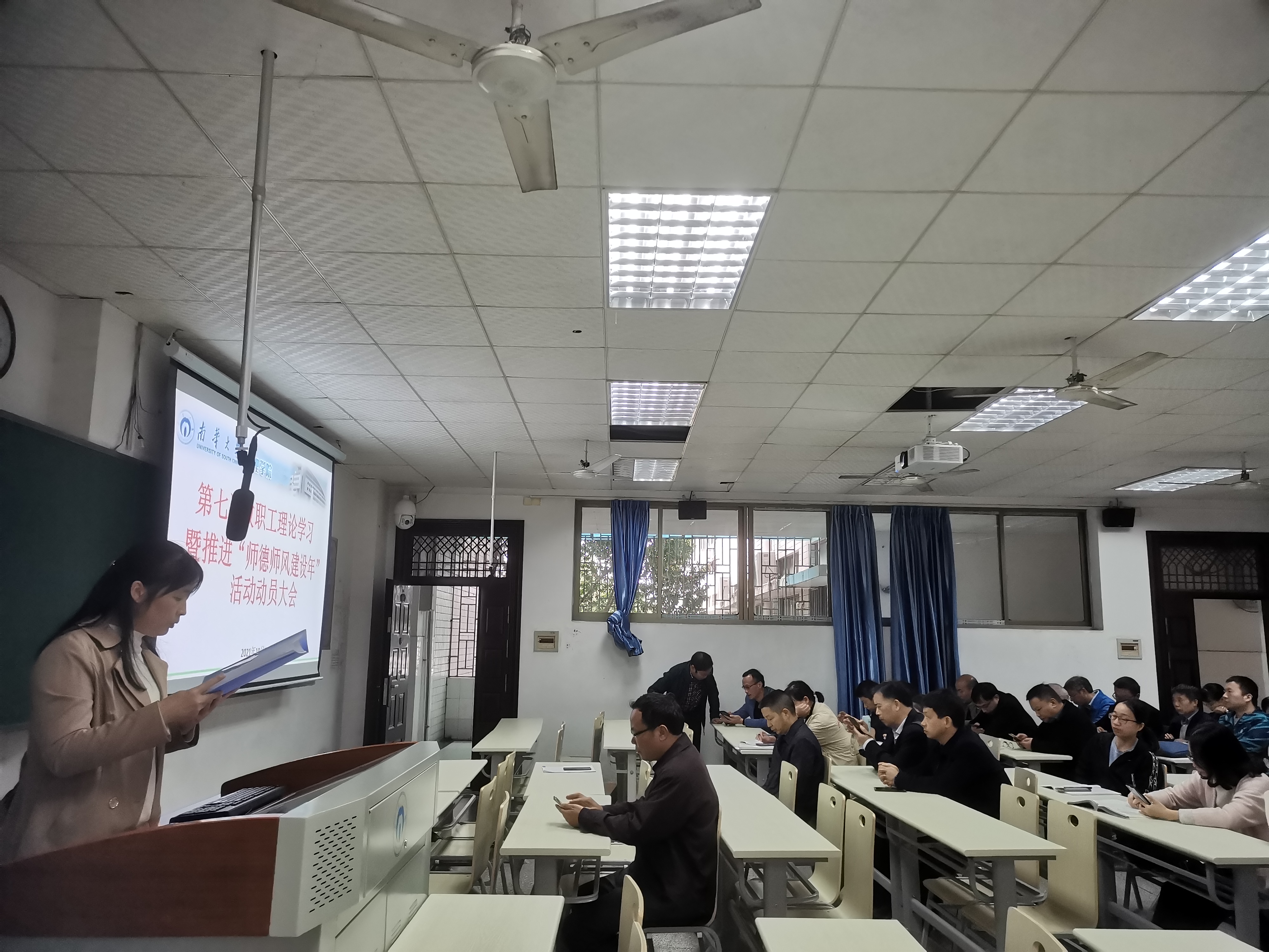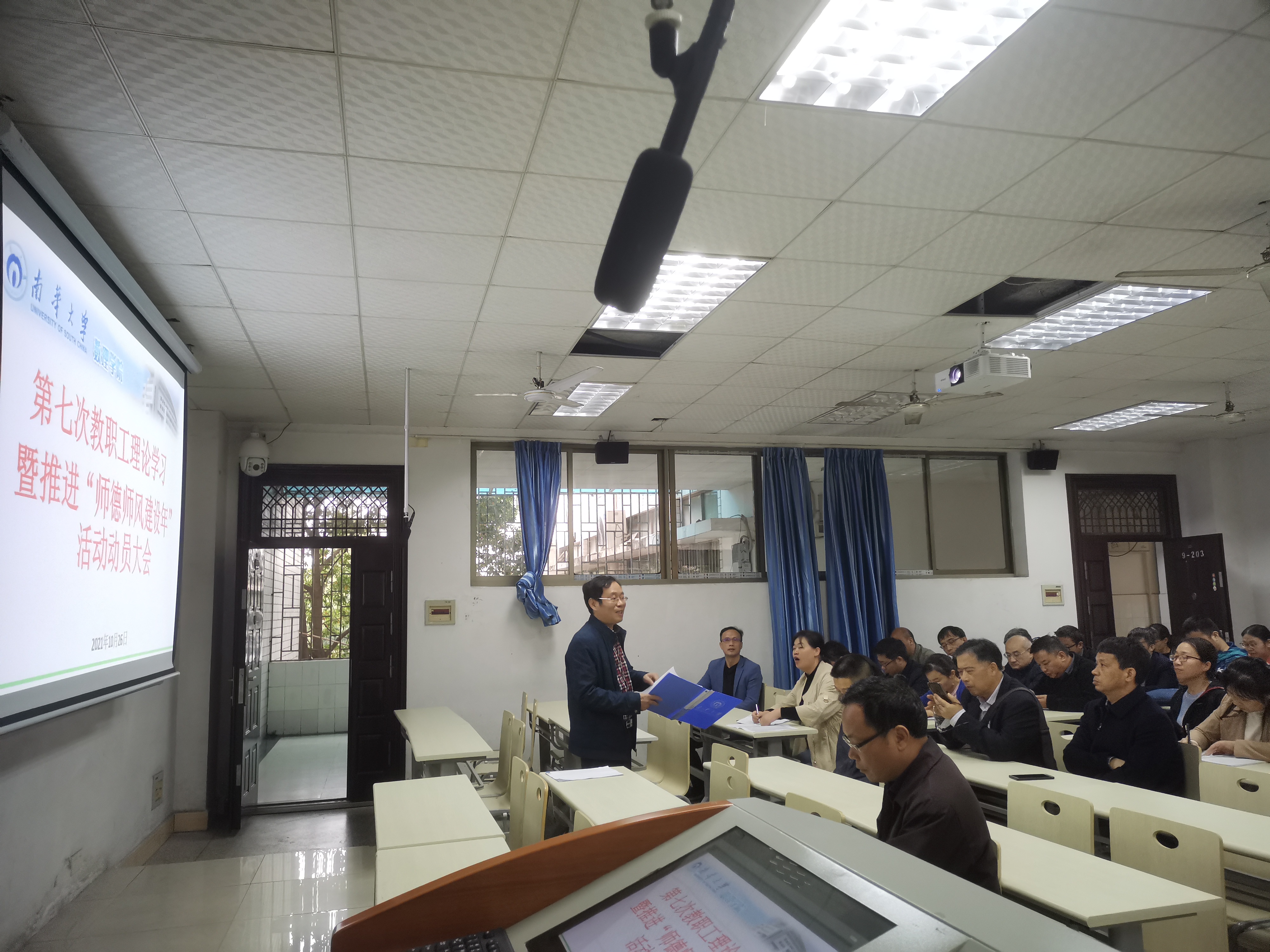 2021年10月26日,欧阳自根书记组织本院没有课的教师开展了数理学院2021年第七次教职工理论学习暨推进“师德师风建设年”活动动员大会。