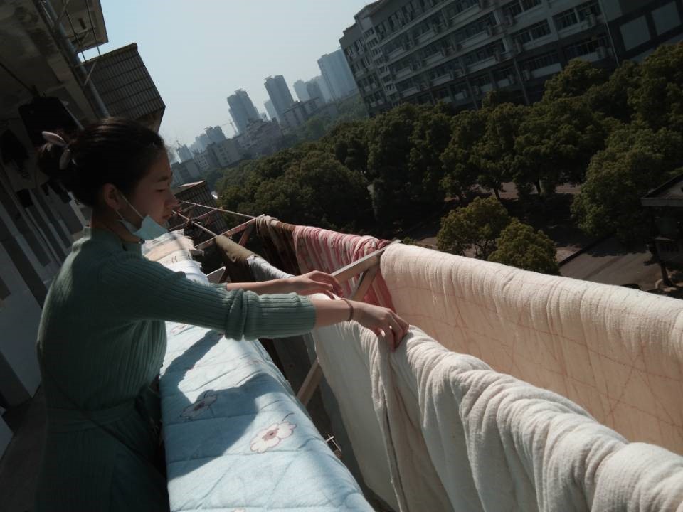 学生宿舍因长期无人居住,以前那种温馨的宿舍现已被灰尘排泄物抹去了,由于晒被空间有限,副书记、辅导员和班主任花了几天时间将所所有需要晒的被子床单和通风的宿舍进行了仔细地处理,通过拍照反馈,给学生吃了定心丸,为顺利迎接学生返校和正常生活又走出了坚实暖心的一步。