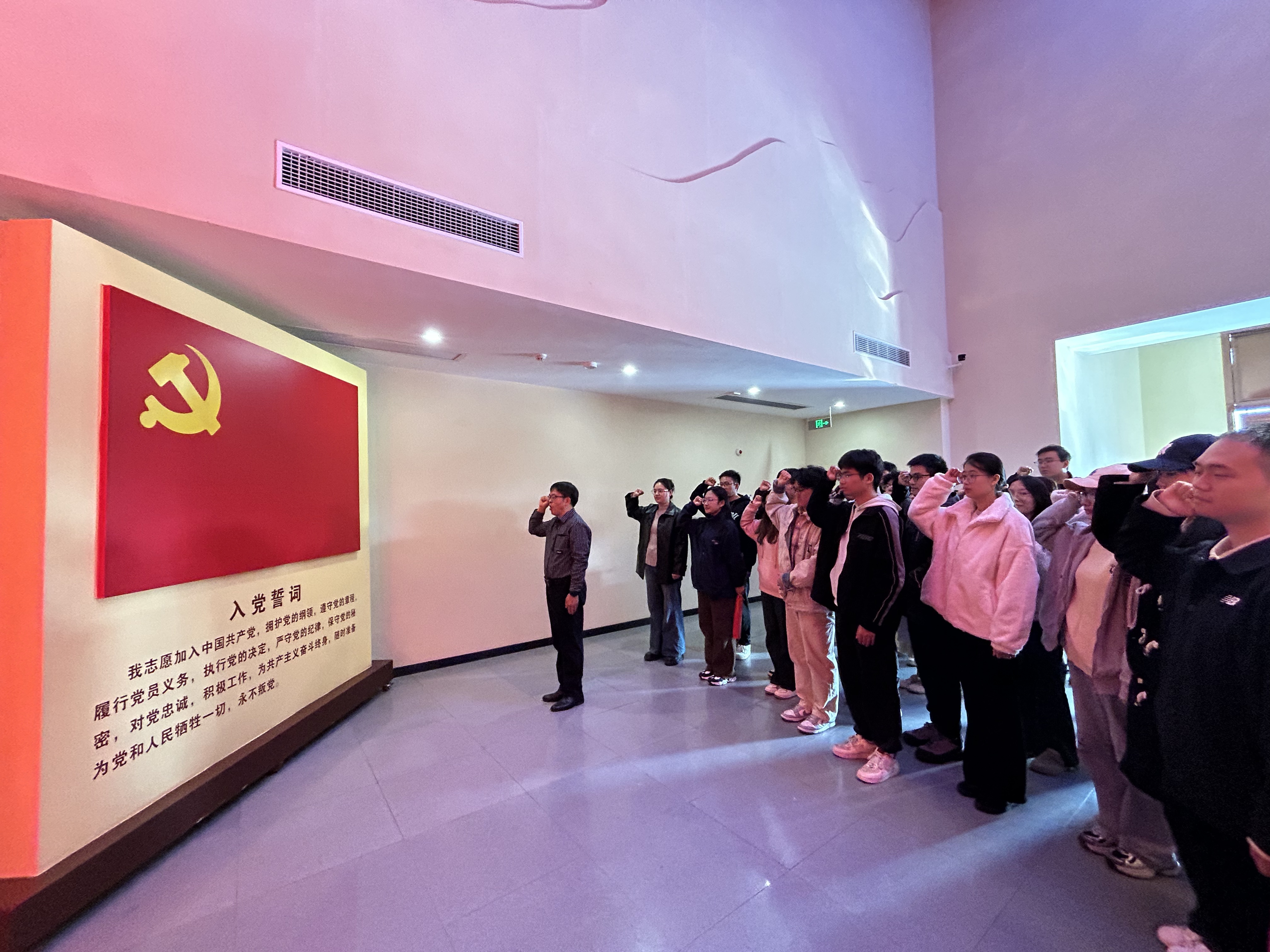 2024年11月23日下午,数理学院的研究生们在学院党委的精心组织下,集体前往衡阳市内的红色教育基地——衡阳市党史馆进行参观学习。数理学院的研究生们满怀敬意地走进了党史馆,初入馆内,数理学院党委副书记田生军带领所有党员面向党旗庄严宣誓,重温入党誓词,践行初心使命。