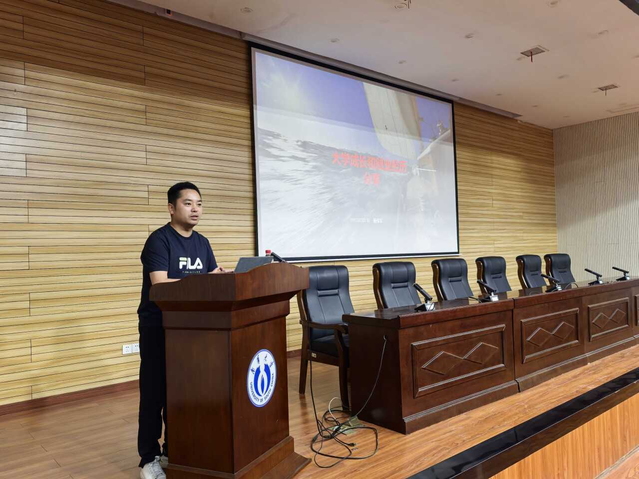 为激发学生创新创业热情,培养新时代复合型人才,4月15日晚,数理学院在崇业楼报告厅举办创新创业主题宣讲会。此次宣讲会由院党委副书记田生军主持,我院2010级优秀校友、衡阳环球远航教育董事长兼校长杨伟军主讲。院学工办主任欧雷、团委书记吴庆林、2021-2022级本科生、研究生代表等150余人参会。