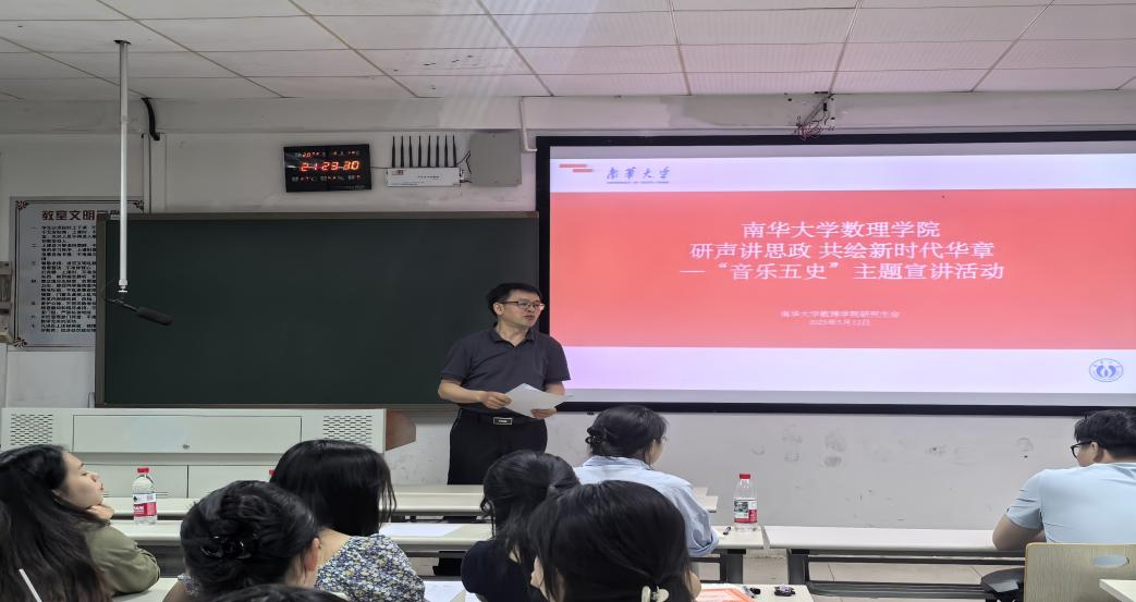 为深入推进我院“一院一品”思政建设,厚植新时代研究生家国情怀和使命担当,2025年5月12日,我院开展了以“研声讲思政,共绘新时代华章——音乐五史”为主题的宣讲活动。院党委副书记田生军、研究生辅导员吴庆林及50余名研究生参加此次宣讲会。七个宣讲小组依次进行展示。