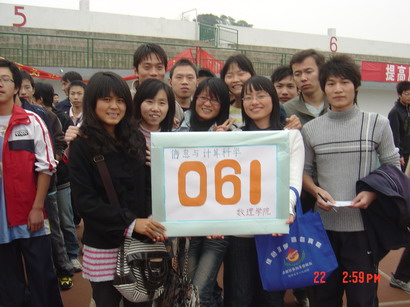 迎面接力在老师的哨声中火热启动,参赛者们个个奋勇争先,现场同学们热烈的欢呼和呐喊声驱走了冬日的寒冷。经过激烈的角逐,核物理081班摘得第一名,信息与计算科学062班夺得第二名,核物理071班获得第三名,其他班级获得优胜奖。道德风尚奖由信息与计算科学081班,核物理071班和081班获得。