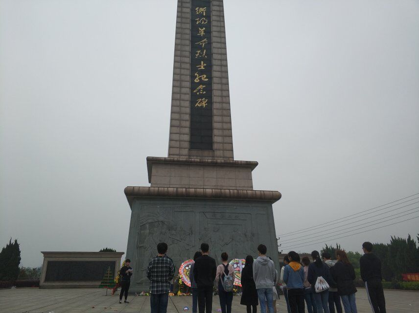 上午10点,全体人员到达衡阳烈士公园。活动由院学生会主席程子明主持。团干们手捧黄菊,迈着整齐的步伐来到衡阳革命烈士纪念碑前,全体肃立,向革命烈士深深地三鞠躬,并默哀一分钟,庄严肃穆的氛围令每位团干都为先烈的大无畏精神而动容。之后院学生会副主席葛正轩代表全院所有团员发言,他深情缅怀了为国家抛头颅洒热血的革命先烈,号召全体团干谨记历史,弘扬革命精神,牢记“明德、博学、求是、致远”的校训,自强不息,做先进文化的传播者,时代精神的弘扬者,为国家的昌盛、民族的辉煌奋斗不息。院团委副书记陈佳伟带领大家进行庄严宣誓,全体团干右手握拳,誓词声声铿锵,以表达继承革命先烈遗志,弘扬先烈爱国之情的决心。最后全体团干怀着无比敬重的心情向革命先烈敬献花圈、祭献鲜花。