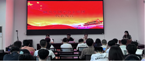 随后,研究生团学会主席团代表谢敏进行了发言。她总结了上学期研究生学生活动的成果,特别强调了楚岳节论坛的成功举办,以及在研究生辩论赛、排球赛等活动中取得的显著突破。谢敏还号召全体学生干部以更高的热情参与学生活动,发挥榜样带头作用,助力学院sunbet申搏官网的进一步提升。