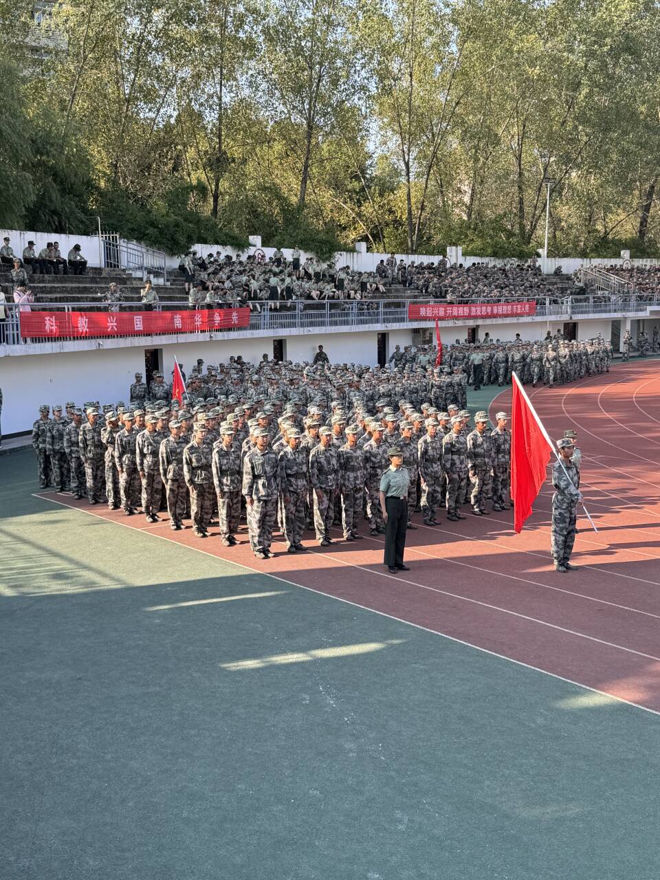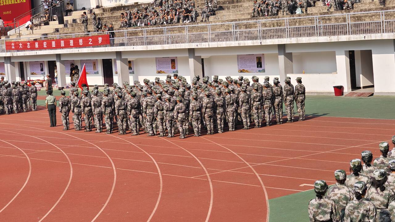 军训期间,24级新生顶烈日、战酷暑,磨练了意志,锻炼了品质。在教官的精心指导下,他们学会了站军姿、踢正步、走队列,从最初的稚嫩散漫到如今的坚毅果敢,完成了一次华丽的蜕变。今天,他们身着统一的迷彩服、迈着整齐的步伐、喊着响亮的口号,展示了数日军训的成果。
