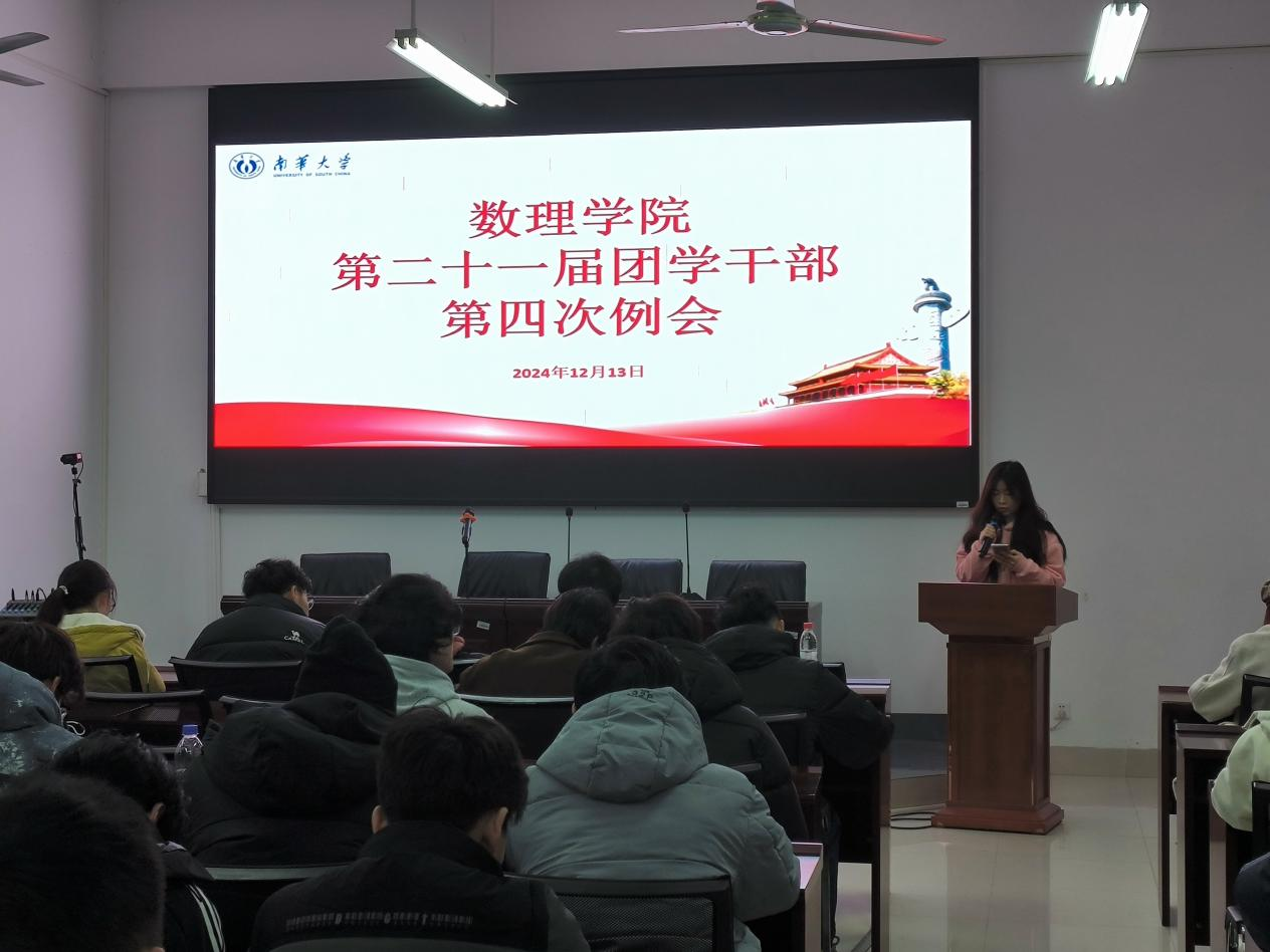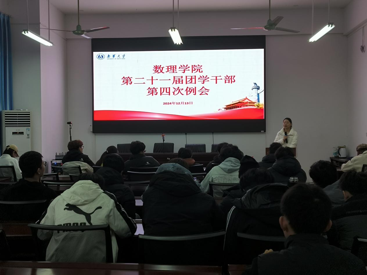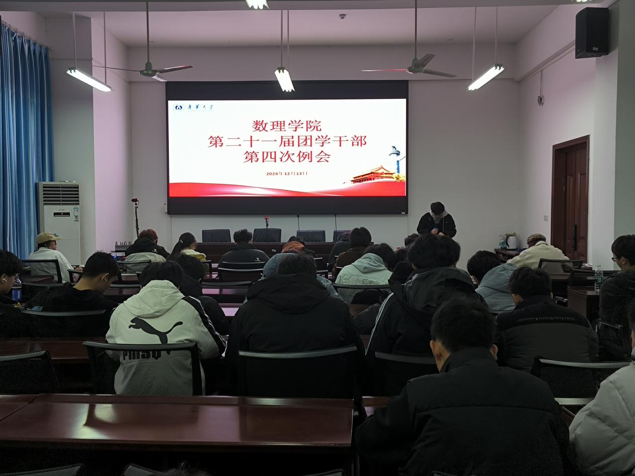 2024年12月13日中午,数理学院于崇德楼108成功召开第二十一届团委、学生会、学社联第四次例会。院团委书记吴庆林、全体团学干部、2023级和2024级各班班长及团支书出席本次例会。