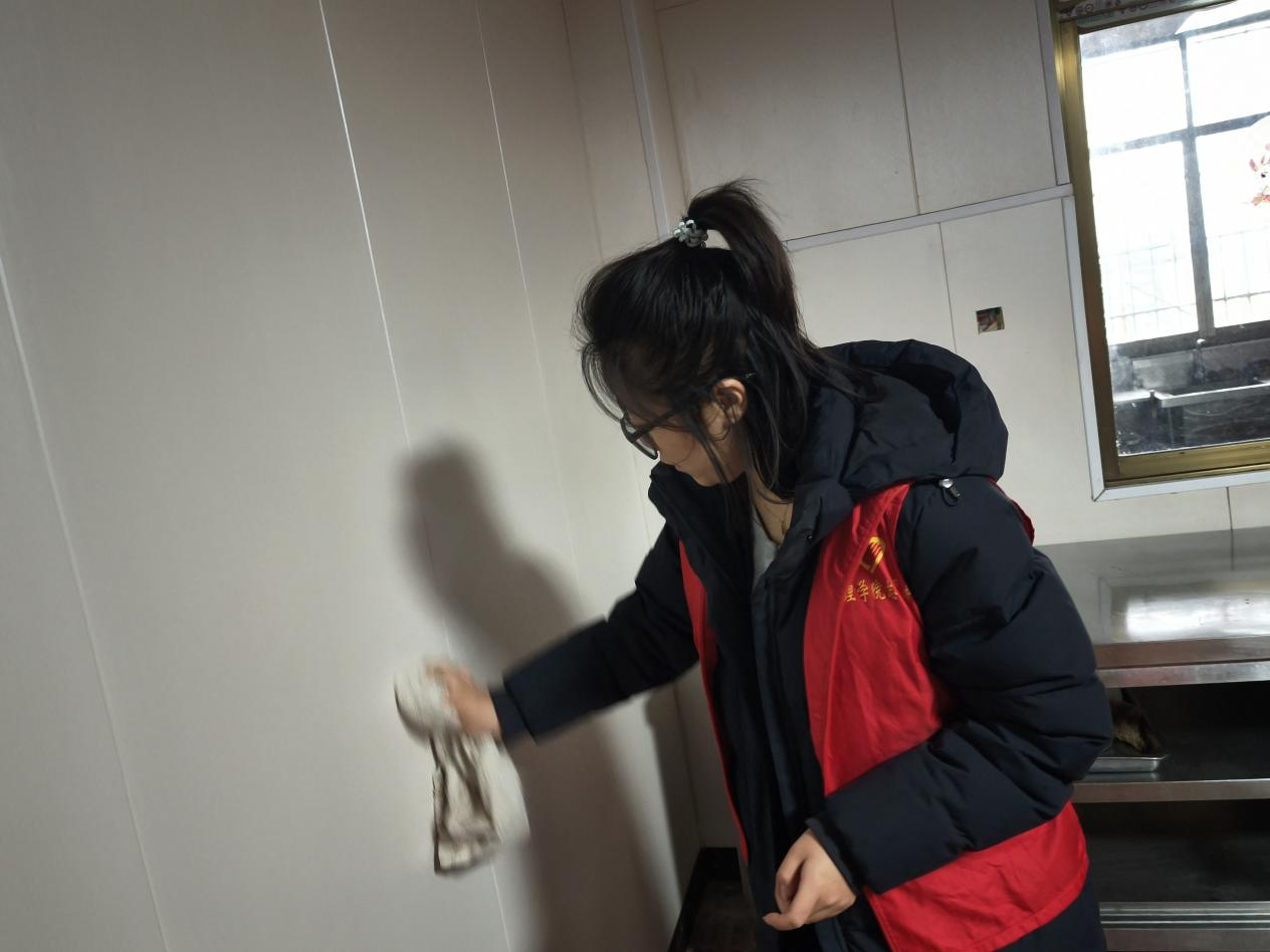 养老公寓的清洁行动率先展开。志愿者们拿起打扫工具,分工协作。从窗户到桌椅,从楼梯扶手到电风扇叶,无一遗漏,都被志愿者精心擦拭。原本布满灰尘、略显陈旧的养老公寓,变得窗明几净,焕然一新。
