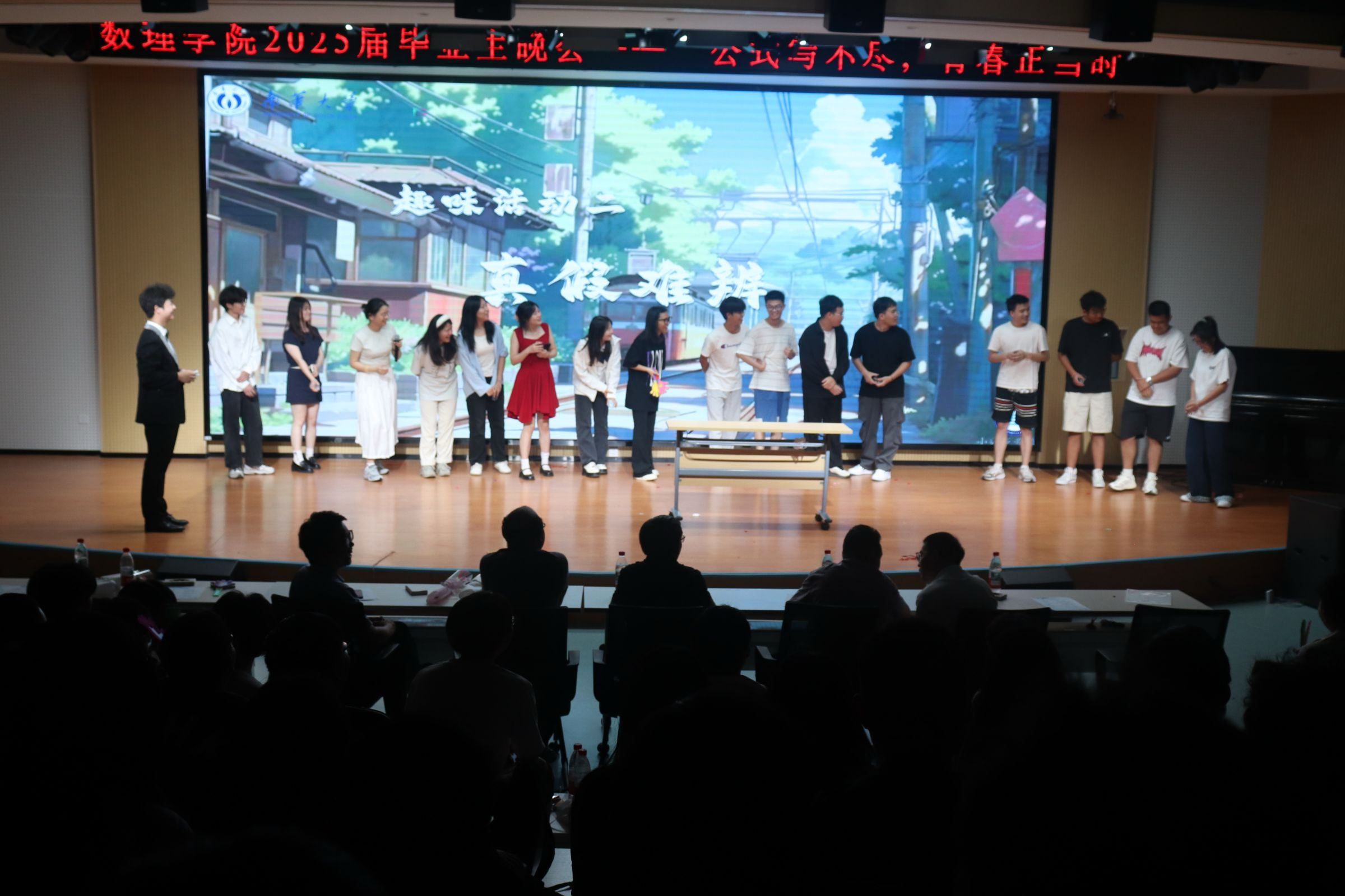 2025年5月26日,数理学院2025届毕业生晚会圆满落幕在松霖学生活动中心圆满举办。出席本次晚会的有院党委副书记田生军、副院长王恒太、院党委委员江春华、信计系主任邹志伟、学工室主任欧雷、辅导员吴庆林、各学院团学会代表、25届毕业生及其他年级本科生代表。