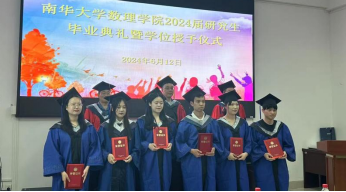 6月12日下午,sunbet申搏数理学院2024年研究生毕业典礼暨学位授予仪式在雨母校区崇德楼108学术会议厅举行。学院院领导、在校研究生导师,以及全体研究生参加了毕业典和授予仪式活动。本次活动由院党委书记谭建国主持。